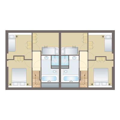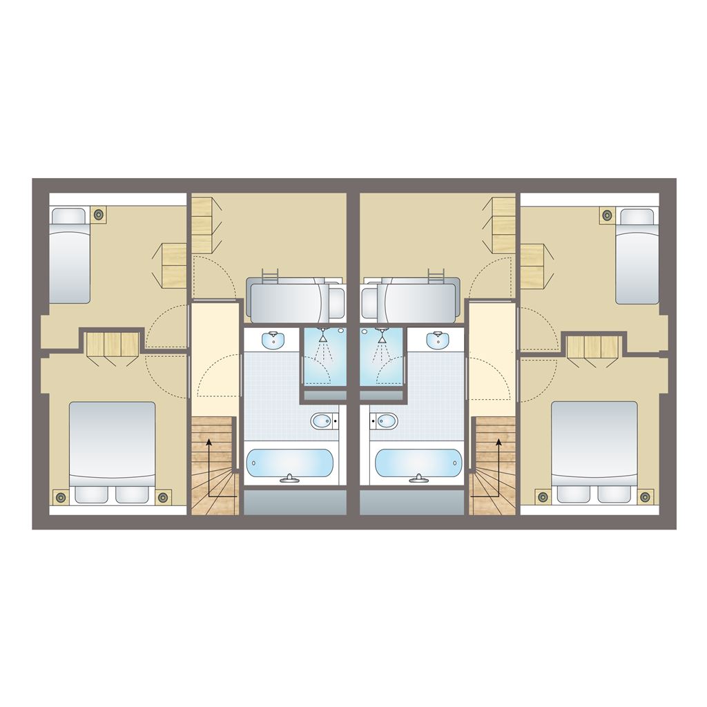 • Zwei Schlafzimmer mit jeweils einem Boxspring-Einzelbett auf der ersten Etage