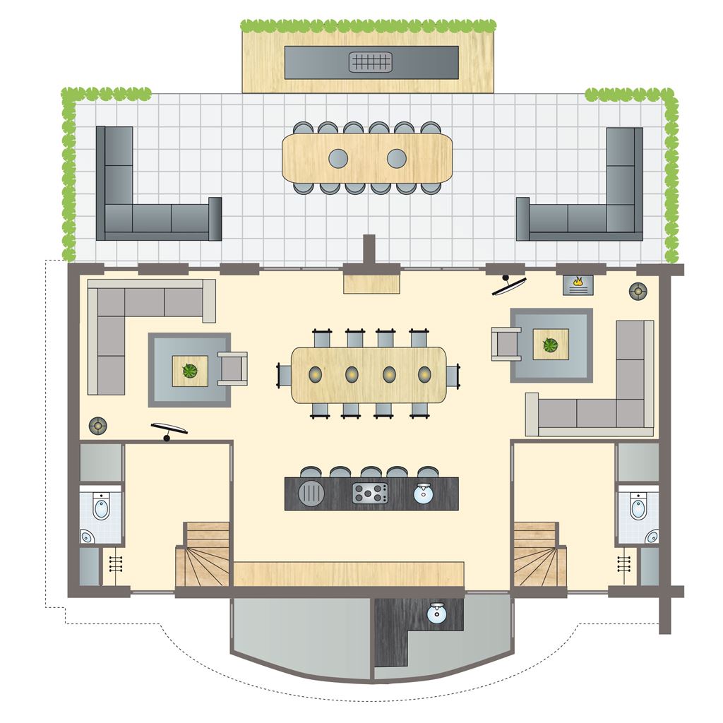- Zwei Lounge-Sitzecken